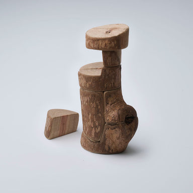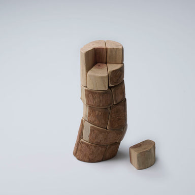 キグミ ログ 木挽職人の手によって生まれた、木のオブジェ。 一本の木を挽き、分割し、再構成することで、自然素材の中にパズルのような構造美を与えています。 年輪や節、木肌の表情はすべて異なり、同じものは二つとして存在しません。 木を知り尽くした職人ならではの感覚が、静かな存在感として佇みます。