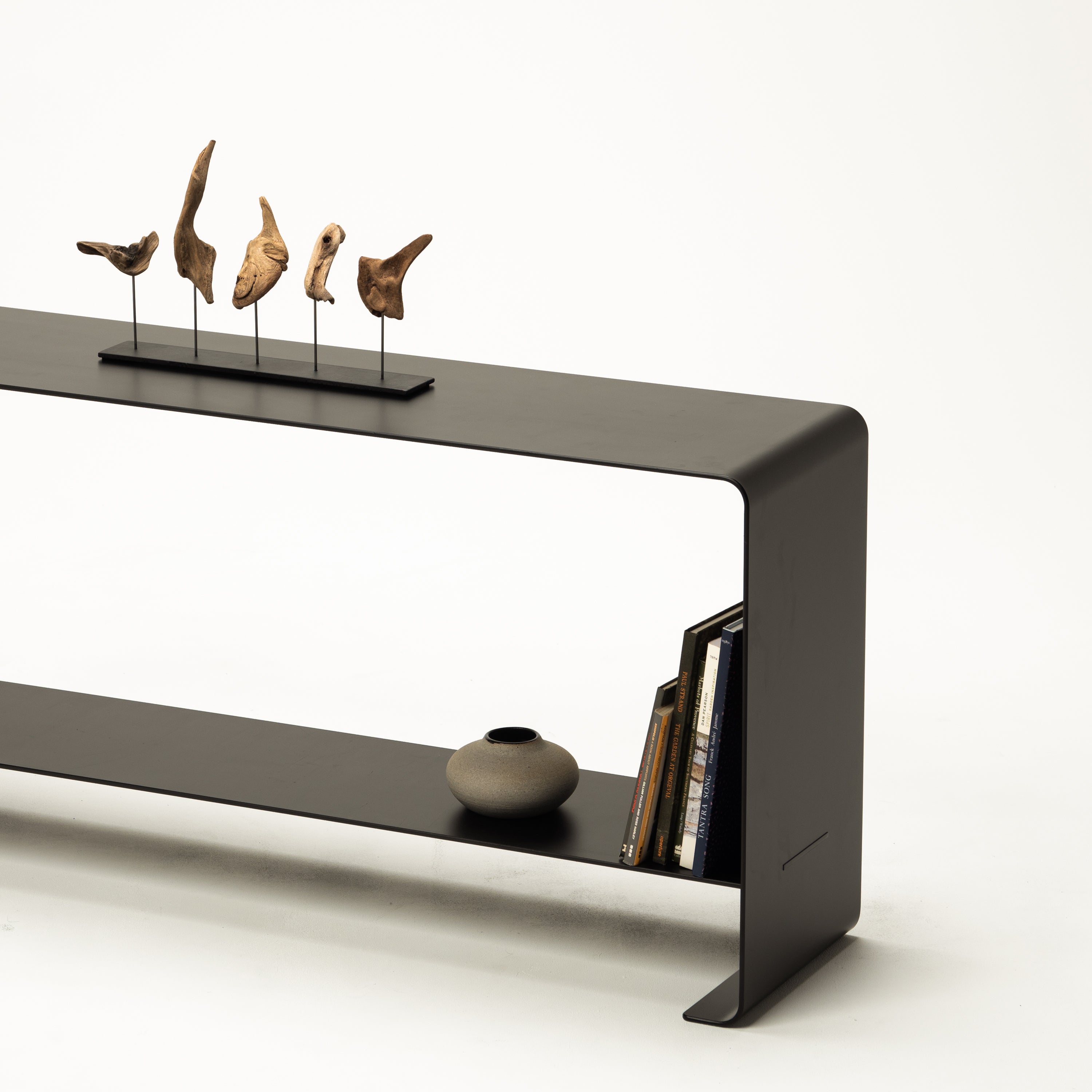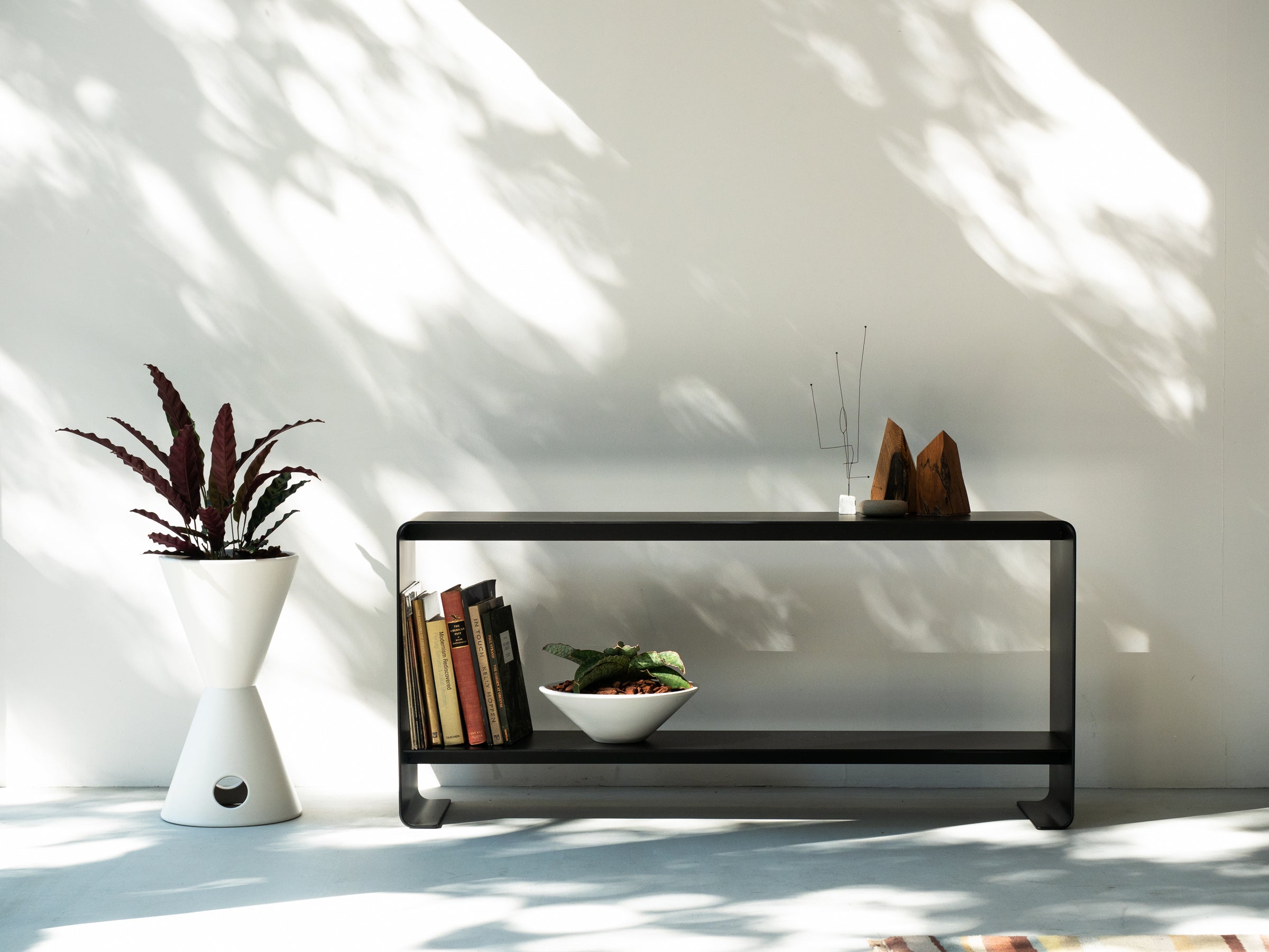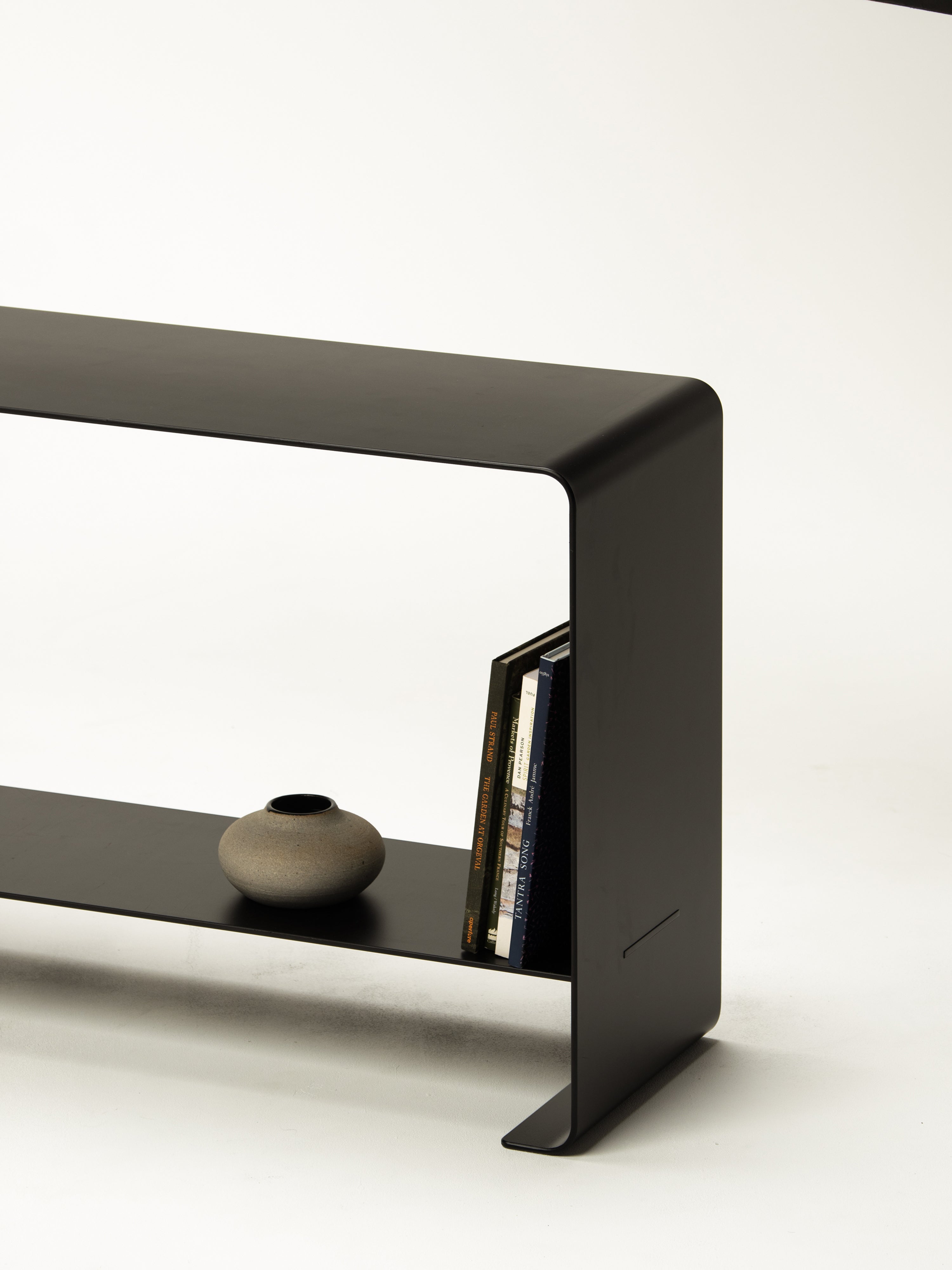 ブラックの6mmのスチール鋼材の曲線が生み出すフォルムは、究極なシンプルさと重厚でフォトジェニックなアイテム。メラミン焼付仕上げ。